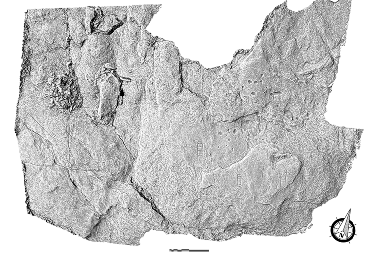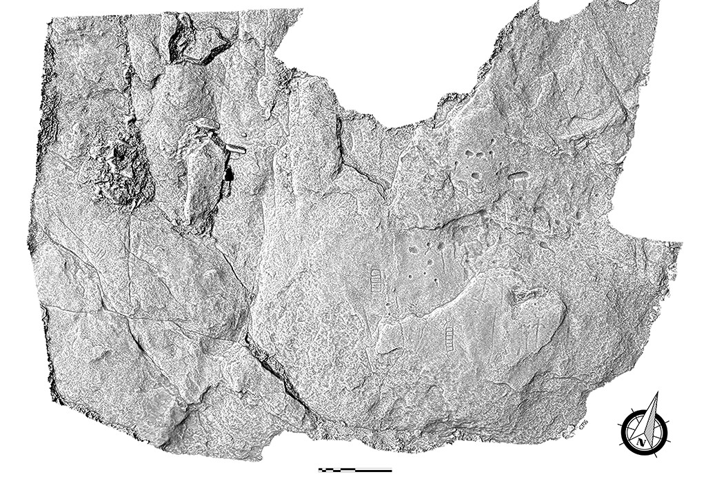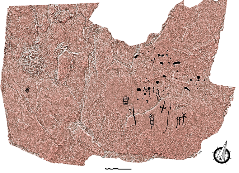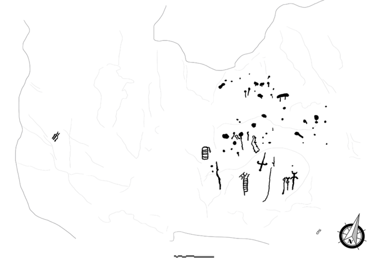 Nesta rocha a parte superior está  ocupada por medio cento de coviñas e pías circulares ou alongadas moitas cun suco que as conecta ó exterior. Este motivo propio da arte atlántica coincide tamén cos puntos da arte esquemática peninsular que no canto de estaren pintados, aquí están gravados. Na parte baixa hai dúas figuras tamén propias da arte esquemática, dous rectángulos segmentados e á dereita tres figuras antropomorfas, dúas delas de brazos e pernas curvas e un longo apéndice que sae de entre as pernas coma prolongación do tronco. Este tipo de antropomorfo aparece en nove rochas máis do xacemento e nalgunhas superficies galegas e protuguesas tanto pintado coma gravado.
