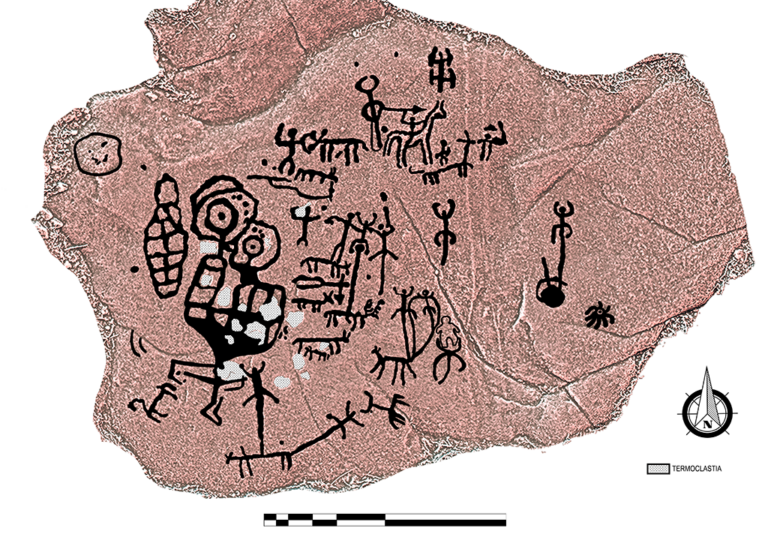 Nesta pequena superficie inclinada ó sur nun panel de 1’5×1’6 m. temos o petróglifo máis complexo do xacemento, cremos que o centro de todo o conxunto de gravados. Xa non é doada a descrición dos motivos e aínda é máis complexa a súa interpretación.